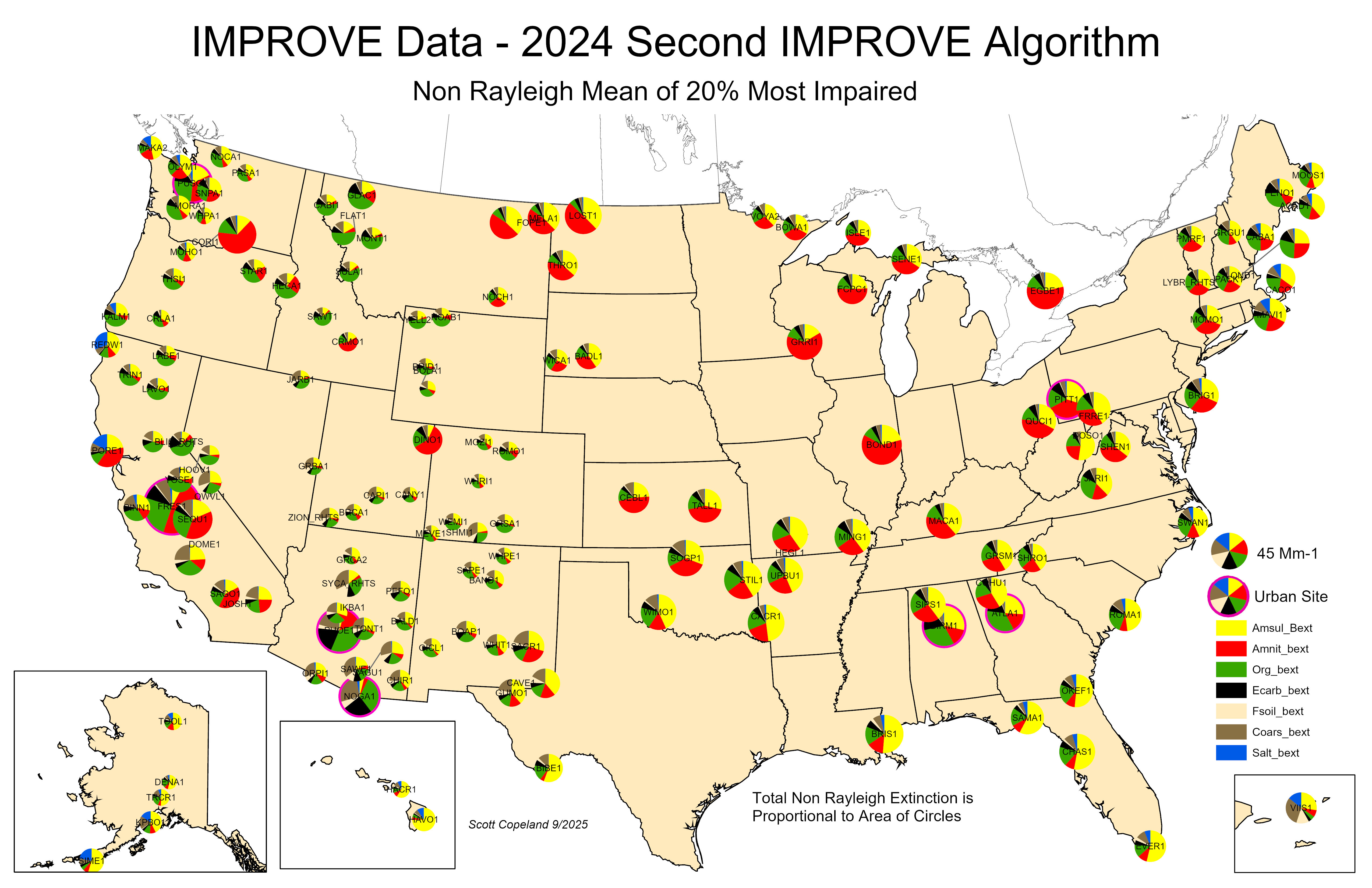 2024 Summary plots for the 20% haziest and 20% most impaired days.